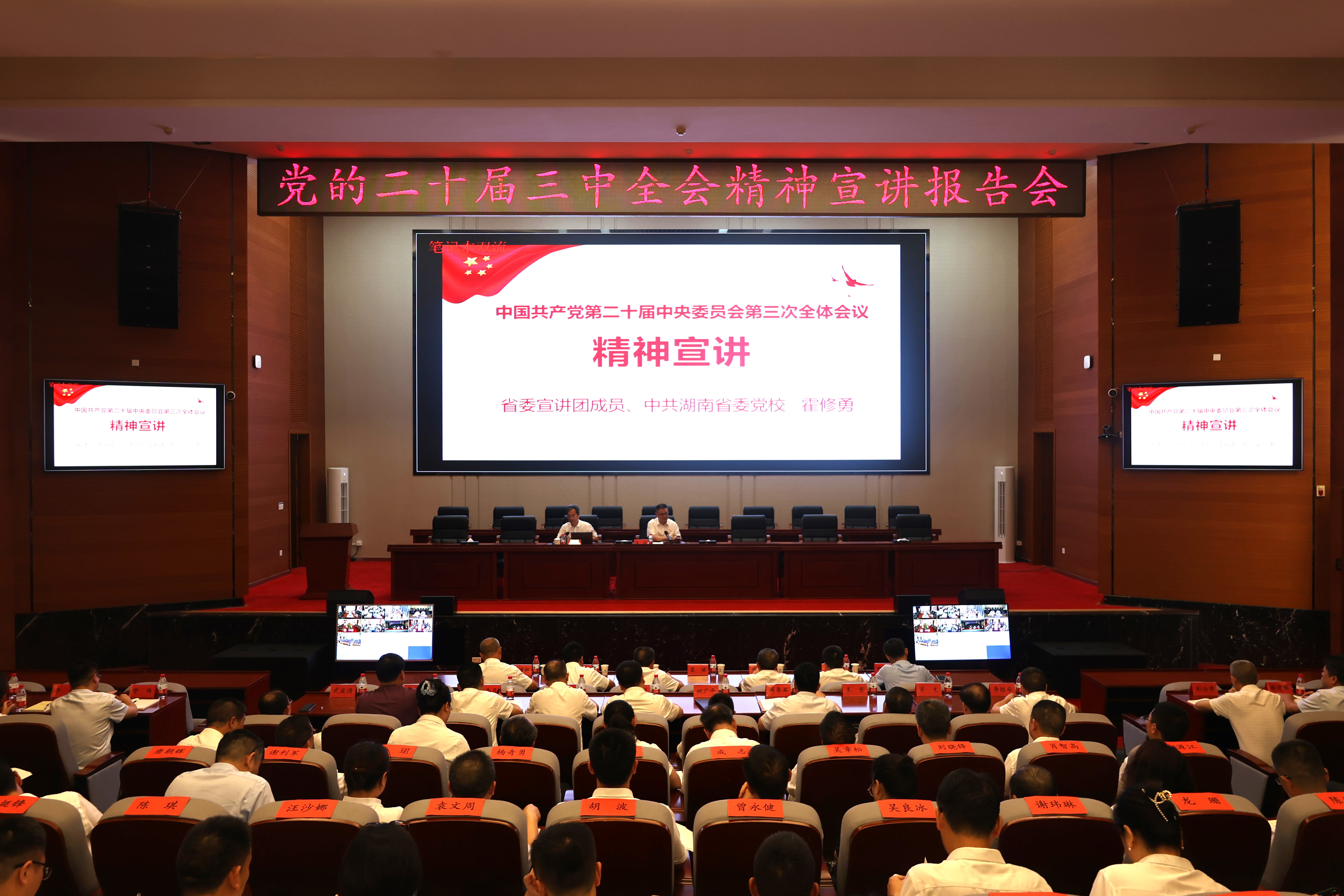 根據(jù)省委統(tǒng)一部署,8月12日下午,學(xué)習(xí)貫徹黨的二十屆三中全會精神宣講報(bào)告會在集團(tuán)舉行。省委宣講團(tuán)成員、中共湖南省委黨校、湖南行政學(xué)院教育長、教授霍修勇作宣講報(bào)告。集團(tuán)黨委副書記、副董事長、總經(jīng)理(主持黨委工作,主持董事會工作)聶誠主持會議。